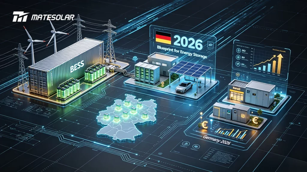 About the Author: This analysis was prepared by the technical and market intelligence team at MateSolar, a global leader in integrated photovoltaic and energy storage solutions. With a comprehensive portfolio spanning residential hybrid systems, commercial outdoor cabinets, and utility‑scale containerized BESS, MateSolar provides end‑to‑end support from system design and certification to remote commissioning and long‑term performance guarantees. As Germany‘s energy storage market enters its most consequential phase, MateSolar remains committed to delivering bankable, future‑proof solutions that empower project developers, industrial enterprises, and commercial businesses to capture the full value of the Energiewende.